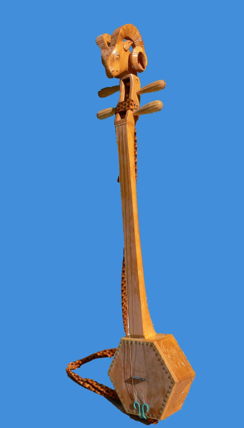 普米族傳統(tǒng)樂器“四弦琴”又被稱為“羊頭琴”,普米語(yǔ)稱為“比柏”。四弦琴演奏早期僅局限于傳統(tǒng)舞蹈《搓蹉》伴奏,現(xiàn)以演奏者的彈奏技藝任意演奏不受限制。四弦舞樂流傳于蘭坪縣境內(nèi)的普米族聚居區(qū)?!八南摇敝谱鳎核南仪僦谱鲿r(shí)長(zhǎng)約一周,由琴桿、琴頭、琴耳、琴弦、琴馬、琴枕、琴箱(共鳴箱)組成,琴身多用核桃木、西南樺木、香樟木等制作;琴頭大多雕刻為羊頭型;琴弦用風(fēng)干后的羊小腸加工而成,現(xiàn)已改用金屬弦線,琴箱普遍為圓型或六角型,制作材料多為羊皮?!八南摇币羯珢偠岷?、定弦多樣、旋律優(yōu)美、節(jié)奏明快、和音豐富,節(jié)奏富于變化。